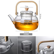 The teapot infuser for loose tea is made of high-borosilicate glass, which is heat-resistant
