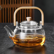 Our this glass teapot is a borosilicate glass tea pot with a glass lid and glass infuser.