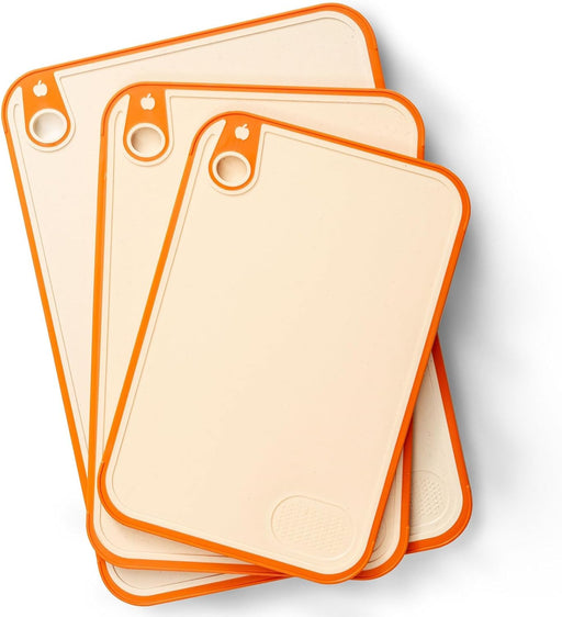 View full detailsWONDER-BLED Reversible Cutting Board Set of 3, Plastic Chopping Board for Kitchen, BPA Free Food Safe PP Material, Non-Slip Design with Easy Grip Handle, Juice Grooves, Dishwasher Safe (White)