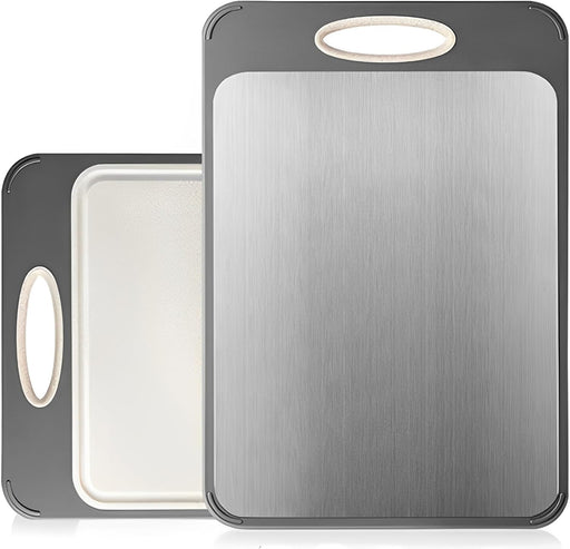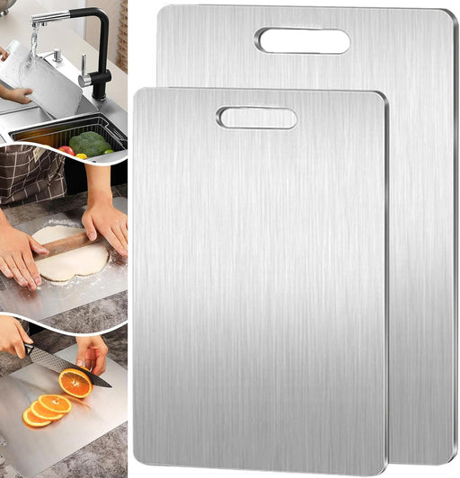 View full detailsFC22 Titanium Cutting Board,Stainless Steel Cutting Board,Steel Cutting Boards for Kitchen,304 Stainless Steel Food Grade Cutting Board for Vegetables Fruit and Meat 15.35*11.2In and13.39*9.06In 2PCS