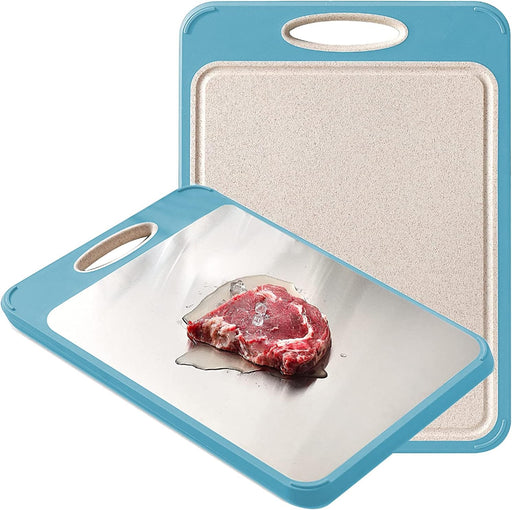 View full detailsBeauenty Cutting Board,Double Sided Cutting Board 304 Stainless Steel Cutting Board and Wheat Straw Chopping Board for Kitchen,16×11 in Large Chopping Board for Fruit,Vegetables,Meat,Easy to Clean