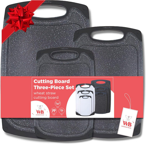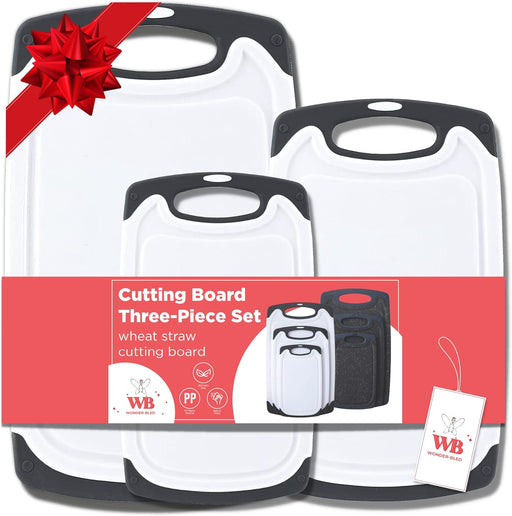 View full detailsWONDER-BLED Reversible Cutting Board Set of 3, Plastic Chopping Board for Kitchen, BPA Free Food Safe PP Material, Non-Slip Design with Easy Grip Handle, Juice Grooves, Dishwasher Safe (Black)