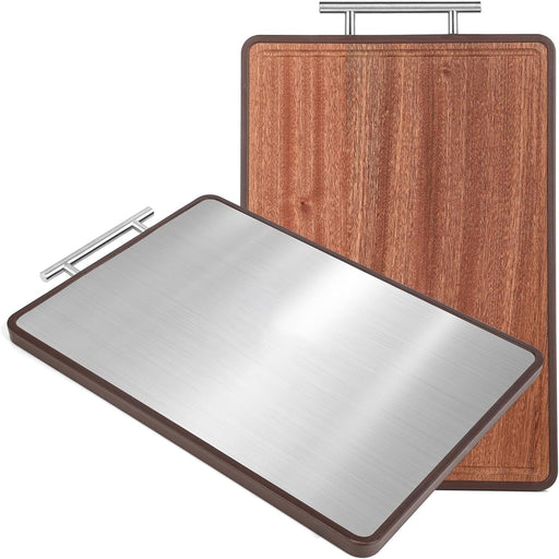 View full detailsYelaJoy Stainless Steel Cutting Board Double Sided - 16.5"x11.8"x0.8" Non-Slip Stainless Steel Kitchen Chopping Board with Juice Groove, Reversible Wood & Steel for Meat, Charcuterie, Vegetables