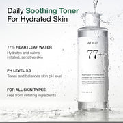 Anua Heartleaf 77% Soothing Toner I pH 5.5 Trouble Care, Calming Skin, Refreshing, Hydrating, Purifying, Cruelty Free, Vegan,(250ml / 8.45 fl.oz.)