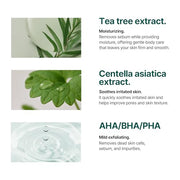 SOME BY MI Miracle Body Cleanser is designed for body acne with AHA, BHA, and PHA to exfoliate and clear pores. Its micro-bubble technology and natural surfactants ensure deep cleansing while protecting sensitive skin. Enriched with Truecica™, Eucalyptus, and Houttuynia Cordata Extract, it soothes and tightens pores, leaving skin refreshed and moisturized.