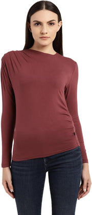 Don't settle for less with your basics. This round neck t-shirt by Levi's adds an understated edge to your casual look. This red t-shirt is simple and stylish. Pair it with a denim jacket and shorts. 1. Comes in a solid pattern and red color 2. Smart full sleeves 3. Comfortable regular fit
