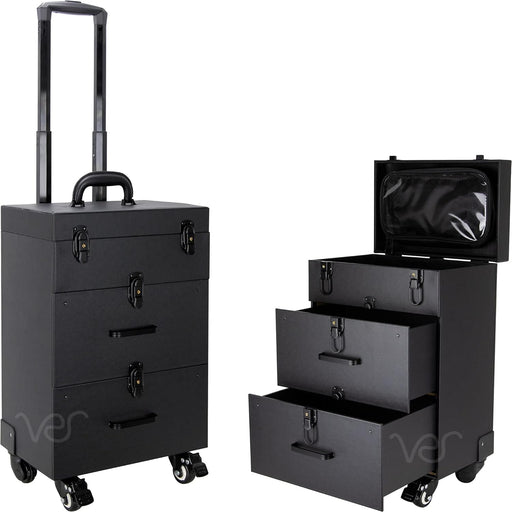 View full detailsVer Beauty Rolling Makeup Trolley Salon Cosmetic Hair Stylist and Professional Nail Artist Train Case Hairdressing Organizer Box 360° Swivel Wheels Faux Leather, Black