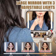 - ?Professional makeup mirror?Makeup train box 4K full-screen large mirror adjustable LED lights, long press the switch to adjust the light brightness from 0% to 100%, gently touch the switch can easily adjust three kinds of lights, cold light, natural light, warm light, long press to adjust the light brightness, short press to adjust the light color temperature, to meet your needs of different scenes.