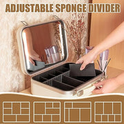 - ?Multifunctional Cosmetic Organizer?Our travel makeup case has removable EVA baffles and a large makeup brush organizer to ensure neatness while protecting the mirror, which can accommodate a variety of different sizes of cosmetics and makeup brushes, with a layer of anti-drop sponge pads on the surface of the divider to well protect the cosmetics and beauty accessories inside.