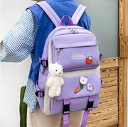 TAPIT 5PCS School Backpacks Combo Set with Bear Pendant Back to School Supplies Cute Schoolbag Lunch Bag Pencil Case Shoulder Bag Travel Bag Gifts for Girls Purple, One Size
