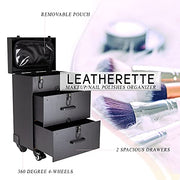 Ver Beauty Rolling Makeup Trolley Salon Cosmetic Hair Stylist and Professional Nail Artist Train Case Hairdressing Organizer Box 360° Swivel Wheels Faux Leather, Black