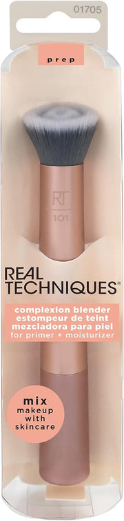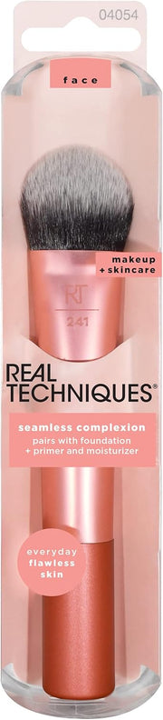 REAL TECHNIQUES Seamless Complexion Makeup Brush, Four Foundation, Primer, And Moisturizer, Makeup & Skincare Face Brush, Streakfree And Natural Finish, Orange, 1 Count
