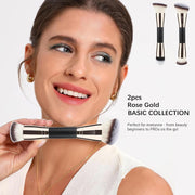Zbzoalp 2 Pcs Double-Ended Makeup Brushes Foundation Brush, Concealer Brush, Slanted Contour Brush, Flawless, Professional Face,Premium Luxe, for Liquid Cream(Rose Gold)