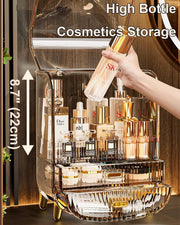 LARGE CAPACITY - Cosmetics Display Case size: 14.3‘'H x 11.2"W x 7.2"D(36.5cm*28.5cm*18cm) Keep your counter/bedroom tidy but won't take too much space.