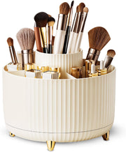 Our makeup brush holder features a classic vertical stripe design and gold-plated feet for a stylish and sophisticated look that complements any vanity.