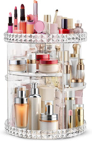 The rotating makeup lazy susan serves as a versatile organizer for dressers, bathrooms, skincare products, perfumes, kitchen spices, fruits, snacks, and more. Its beautiful and charming design makes it a perfect helper for organizing various items.