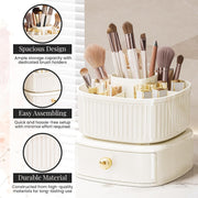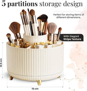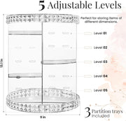 This makeup organizer comes with 5 storage compartments, this cosmetic organizer offers excellent partitioning for storing makeup brushes, perfume, nail polish, lipstick, eyeshadow, skincare products, and more.