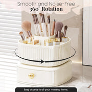 The SPAULD vanity organizer revolutionizes cosmetic storage with its 360° rotating design, ensuring effortless and noiseless access to all your favorite makeup products and perfumes, keeping everything perfectly organized.