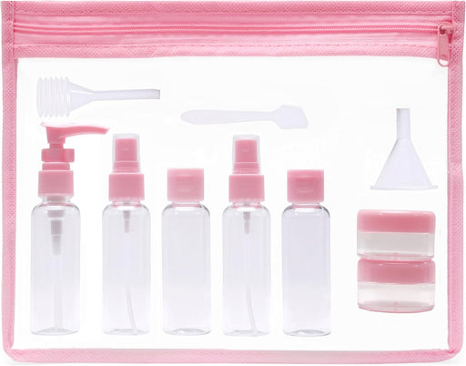 View full detailsINOVERA (LABEL) 10 Pcs Travel Toiletrie Bottles Kit - Refillable Spray Bottle Containers Pouch for Shampoo, Body Lotion, Cream - Travelling Toiletries Container Set (Pink)