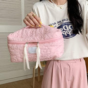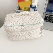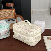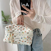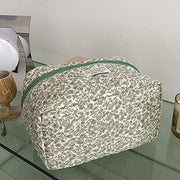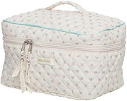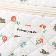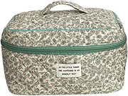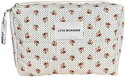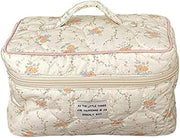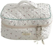 Juoxeepy Cotton Makeup Bag Large Travel Cosmetic Bag Quilted Cosmetic Pouch Coquette Aesthetic Floral Toiletry Bag, A-White, 10x5.9x5.3in