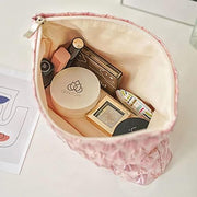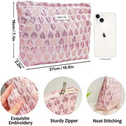 STARDW Flower Cosmetic Bags Makeup Bags for Women and Girls,Travel Makeup Bag Large Capacity Canvas Makeup Bag,Makeup Organizer Bag Zipper Pouch, Embossed pink, Large Capacity Aesthetic Makeup Bags