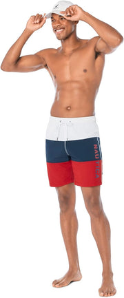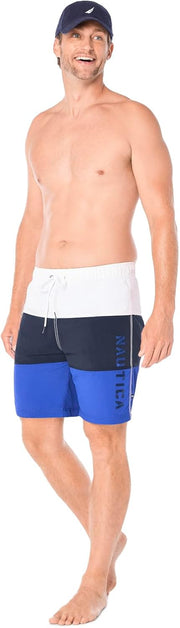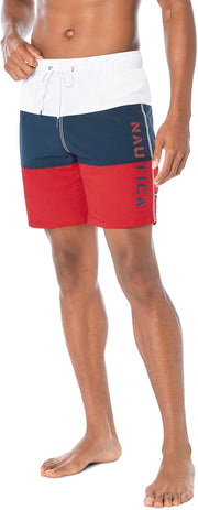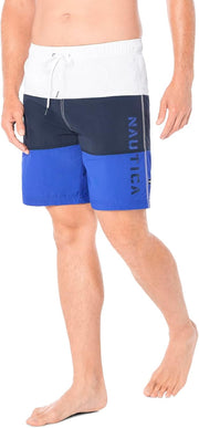 Nautica mens Quick Dry Classic Logo Tri-block Series Swim Trunk Swim Trunks
