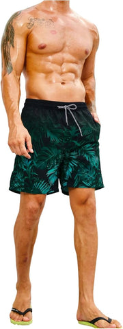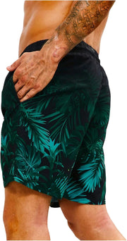 GORGLITTER Men's Drawstring Elastic Waist Tropical Print Swim Trunks Slant Pocket Summer Shorts