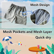???6inch Mens Swimming Shorts?Designed with a breathable mesh liner, these men's swim trunks offer enhanced ventilation, keeping you cool and preventing discomfort during long wear.