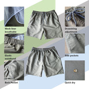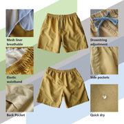 ???Mesh Pocket For More Comfort?The men's swimming shorts feature mesh pockets that allow for quick water drainage, ensuring you stay light and dry during water activities.