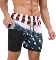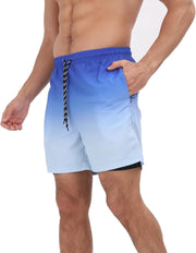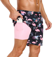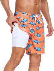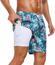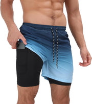 Mens Swim Trunks with Compression Liner 2 in 1 Quick Dry Beach Swimming Trunks Swim Shorts with Zipper Pockets