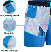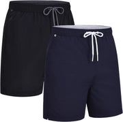 RBYEKP Mens Swimming Trunks 2 Pack Quick Dry Beach Surfing Shorts for Men Elastic Waist Board Short with Mesh Lining(Slim Fit)