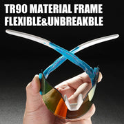 【Stress-Resistant TR90 Frame】All frames are made of lightweight and durable TR90 material, even if you wear it for a long time, you will not feel discomfort and tired. This cycling sunglasses are made of lighter materials and can be hung on the waist, making it more convenient to use.