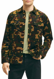 Brooks Brothers mens Medium Wale Corduroy Camo Shirt Jacket Button Down Shirt