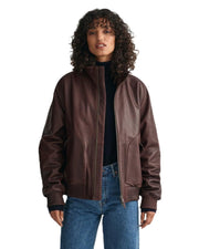 Pulling inspiration from vintage aviator style, the Leather Bomber Jacket is the perfect piece for transitional weather. Fashioned from 100% premium lamb leather, the jacket is cut for a relaxed fit and finishes just below the waist. Its design features half-raglan sleeves, zip closure that extends to the collar, patch pockets and a light, quilted padding on the inside. This garment is intended for a relaxed fit. For a closer fit, we recommend sizing down.