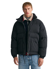 Fashioned for a relaxed fit, this puffer jacket is crafted out of a cotton-polyester blend and insulated with a polyester filling. The jacket length finishes at the hips and its design features a stand-up collar, large side patch pockets, and an elasticated hem and cuffs with an adjustable drawstring. The jacket is also treated with a water-repellent finish and embellished with a leather GANT logo patch on the sleeve. This garment is intended for a relaxed fit. For a closer fit, we recommend sizing down.