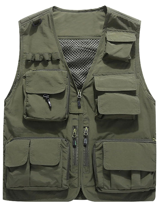 Flygo Men's Casual Outdoor Work Safari Fishing Travel Photo Cargo Vest Jacket Multi Pockets