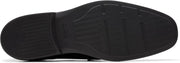 Easy-care black leather upper with subtle stretch to enhance fit
