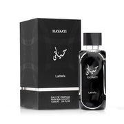 Hayaati by Lattafa Perfumes is a Woody Aromatic fragrance for men. Hayaati was launched in 2020. Top notes are Apple and Bergamot; middle notes are Cinnamon and Woodsy Notes; base notes are Musk and Vanilla.