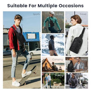 Fingerprint Unlock Anti Theft Proof Crossbody Bag, Leather Purse Waterproof Large Sling Bag for Men, Multi-pocket Backpack Bag for Travel, Black