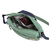 Simplistic crossbody bag for small essentials. Easy to carry over the shoulder or by hand and just as suitable for travelling as everyday use. Made from G-1000 HeavyDuty Eco S with a padded base and recycled nylon inside. Both the main compartment and inside pocket have zippers and there is also an easily accessible zippered pocket on the back against the body.