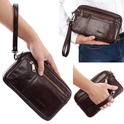 KPYWZER Leather Clutch Purse Wallet Men Wristlet Holder Wrist Bag Pack Business Handbag
