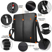 YumSur Mens Shoulder Bag, Genuine Leather Messenger Handbag Crossbody Bag for Men Purse iPad Bag for Business Office Work School with Adjustable Strap Black, Black, One Size