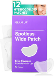 GLAM UP Spotless Wide Patch Hydrocolloid Coverage for Face Pores, Zits, and Oil - Strong Gunk Absorption Overnight, and Calm Treatment with Tea Tree (12 Patches)