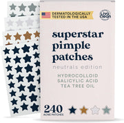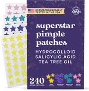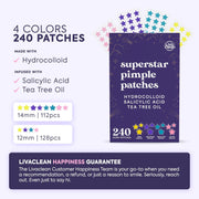 LivaClean Star Pimple Patches for Face w/Hydrocolloid, Salicylic Acid & Tea Tree, 240 Patches, Hydrocolloid Acne Patch, Cute Star Pimple Patch for Healing Stickers Zit Superstar