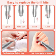 • ?Multi-functional Nail Drill Kit?Electric nail file tool for women is packed with 6 difference nail drill bits, you can quickly choose the desired nail drill bit, do the nail artwork anytime and anywhere. Designed for hand and foot care experience at home, the salon-quality portable nail file manicure kit for women is suitable for trimming, grinding and polishing natural nails and thick nails. The professional nail polisher kit is ideal for both beginners and professionals.