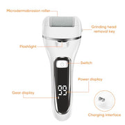 Electric Callus Remover for Feet | Rechargeable Foot File, Electric Foot Scrubber | 18 Piece Pedicure kit for Cracked Heels & Dead Skin with 3 Roller Heads By Quantum Lux (White)