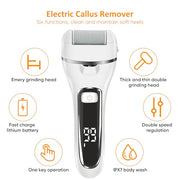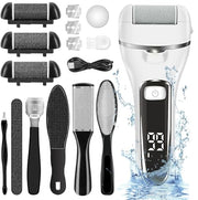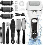 Tackle rough, dry feet with this electric foot callus remover kit. With 18 interchangeable heads for smoothing away hard skin, you'll have everything needed for softening calluses. The ergonomic handle ensures a comfortable grip while rotating heads gently buff away dead skin. A built-in safety lock prevents accidental use, and auto-shutoff after 15 minutes of non-use preserves battery life. Water resistant heads pop off for easy cleaning. This kit is perfect for home pedicures - simply wet skin, and select the appropriate head for your needs. Sit back and let the electric rotating action do the work as you relax and enjoy smoother feet.