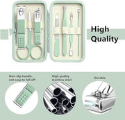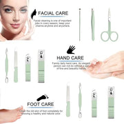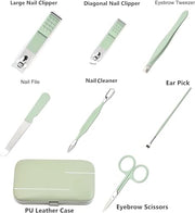 Product ?Green manicure pedicure facial 7 pieces set ?Four colors of this style and more styles and colors are available Features ?7 basic grooming tools for hands and feet facial care. With this set of nail clippers, dead skin, cuticle,ingrown fingernails and toenails can be easily and perfectly removed. ?Experience exceptional difference in your nail, facial, hand and foot care with our carefully crafted Manicure and Pedicure Tool set. Pimples, dead skin and ?ingrown toenails stand no chance. ?Portable size,compact nice case,easy to put in your luggage,purse or bag,good for travel. Use for ?Give yourself or your family a perfect nail care experience at home. ?Carry it with you when traveling or going out to maintain your beauty and nail care routine. ?It's not only a practical addition to your personal grooming routine but also a thoughtful gift choice for friends and family, perfect for birthdays, holidays, Thanksgiving, Christmas, New year or special occasions. Services and Tips ?We describe the uses of these tools in detail. Maybe these tools have different names and uses.If you have any questions, we are always ready to help you answer them. ?The tools is sharp, so please be careful and cautious when using it, especially for children and the seniors. ?We offer a variety of nail care tools kit, ensuring that you can choose one that suits you and one that is suitable as a gift in our store.