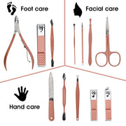 Nail Clippers and Beauty Tool Portable Set, Rose Gold Martensitic Stainless Steel Manicure Set 12 in 1, with Pink Leather Bag, Suitable for Home, Workplace, Outdoor Travel, Gift Giving, Beauty Salon.