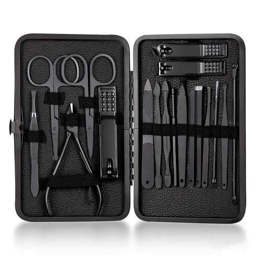 Professional Nail Clippers Set 18 pcs, KASTWAVE Black Stainless Steel Sharp Nail Trimmer Pedicure and Manicure Set with Cortex Metal Case for Men and Women